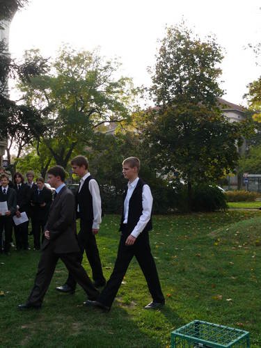 | SzePi képek > A 2008/09-as tanév eseményei képekben > Koszorúzás Dugonics szobránál (2008.10.16) |
