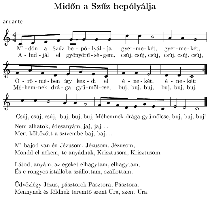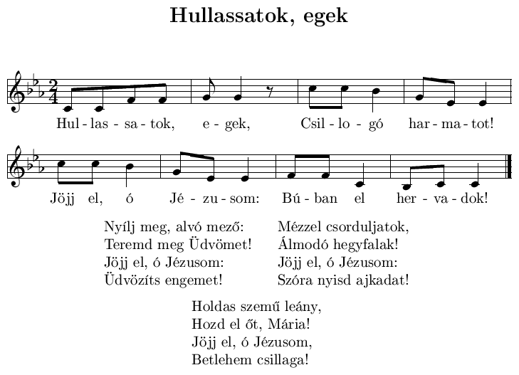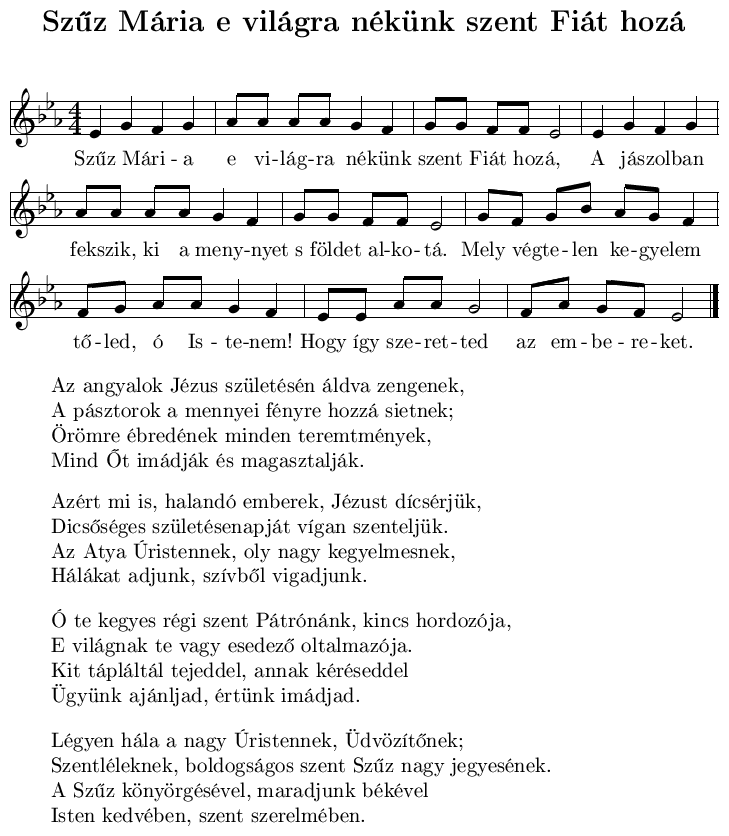- Szűz Mária e világra nékünk szent Fiát hozá