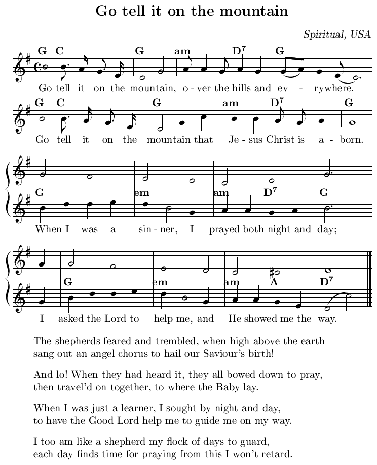 - Go tell it on the mountain